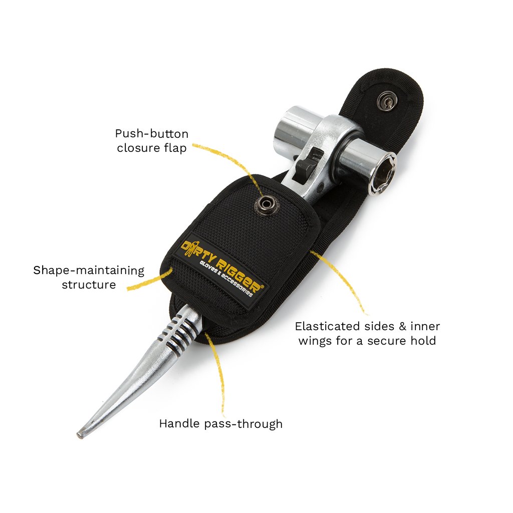 Majte svoj podger vždy po ruke s praktickým puzdrom Dirty Rigger. Úhľadné a nenápadné puzdro je navrhnuté tak, aby pasovalo na Dirty Rigger 4-in-1 Podger a väčšinu ostatných podgerov rovnakej veľkosti. Elastické bočné strany a zapínanie s uzatváracou klapkou na gombík pomáhajú udržať podger bezpečne na mieste. Puzdro je vybavené pútkom na opasok aj klipom, takže si môžete vybrať spôsob uchytenia.